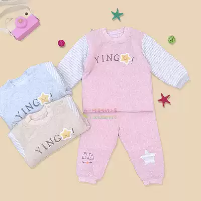 Baby music new spring and autumn winter warm cotton baby set men and women baby soft cotton warm shoulder open set