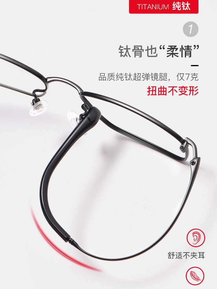 Pure titanium near view eye mirror male and female height number of small face small frame ultralight full-frame near-light glasses can be equipped with degree eye frames