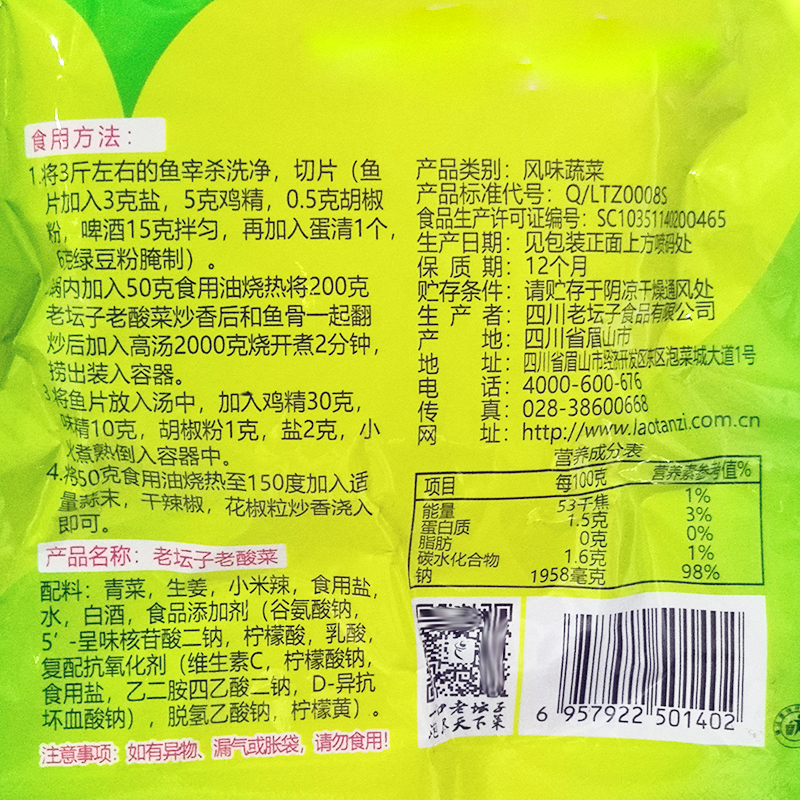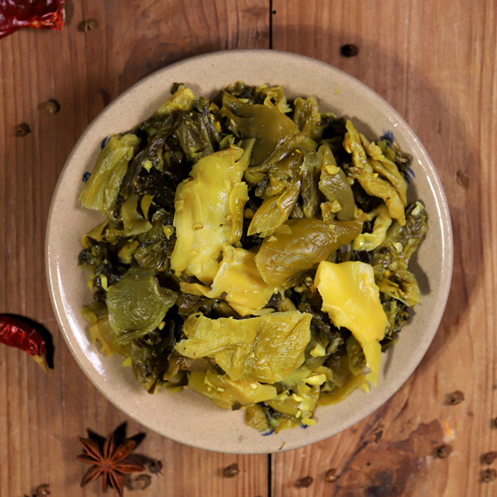 Sichuan Laozi Old and Old Sour Vegetable Fish Sour vegetable 200 gr 4 Bag fermentation free of washing and acid-free sour and sour pickle fish seasoning Home