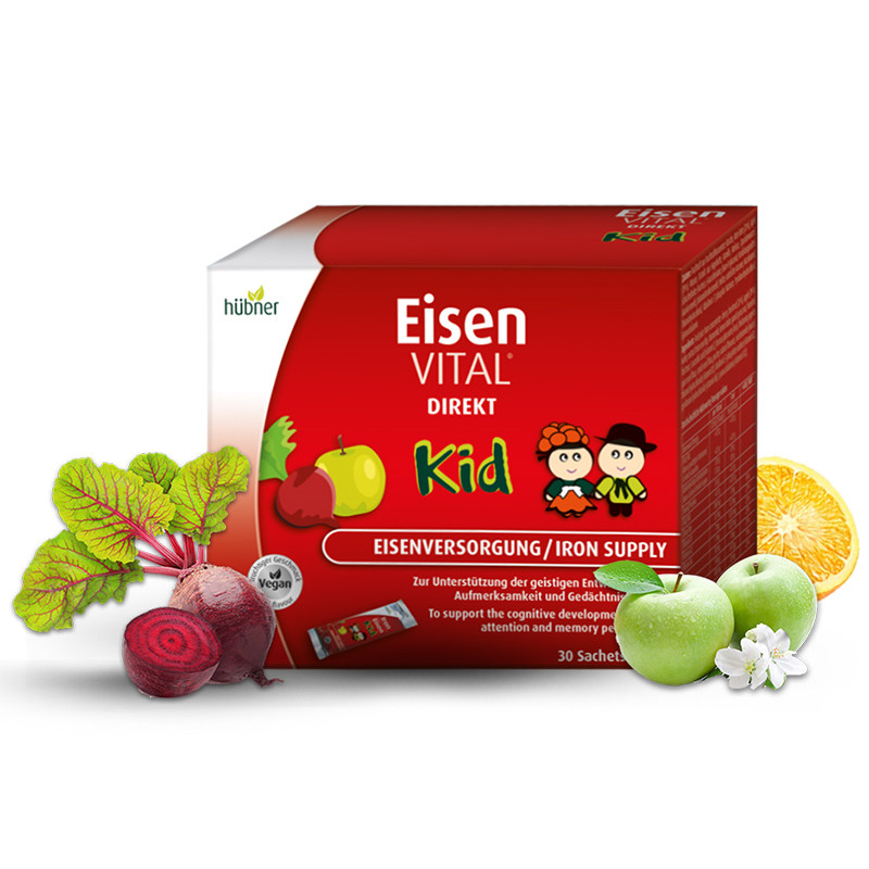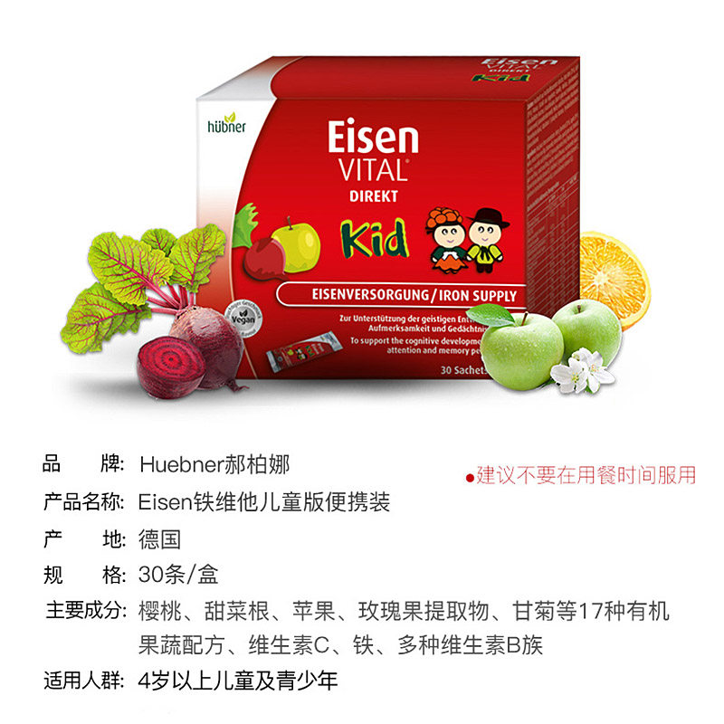 German imports Huebner Hao Berna Children supplement iron oral liquid Eisen blood elements portable packaging 30 strips 4 years old