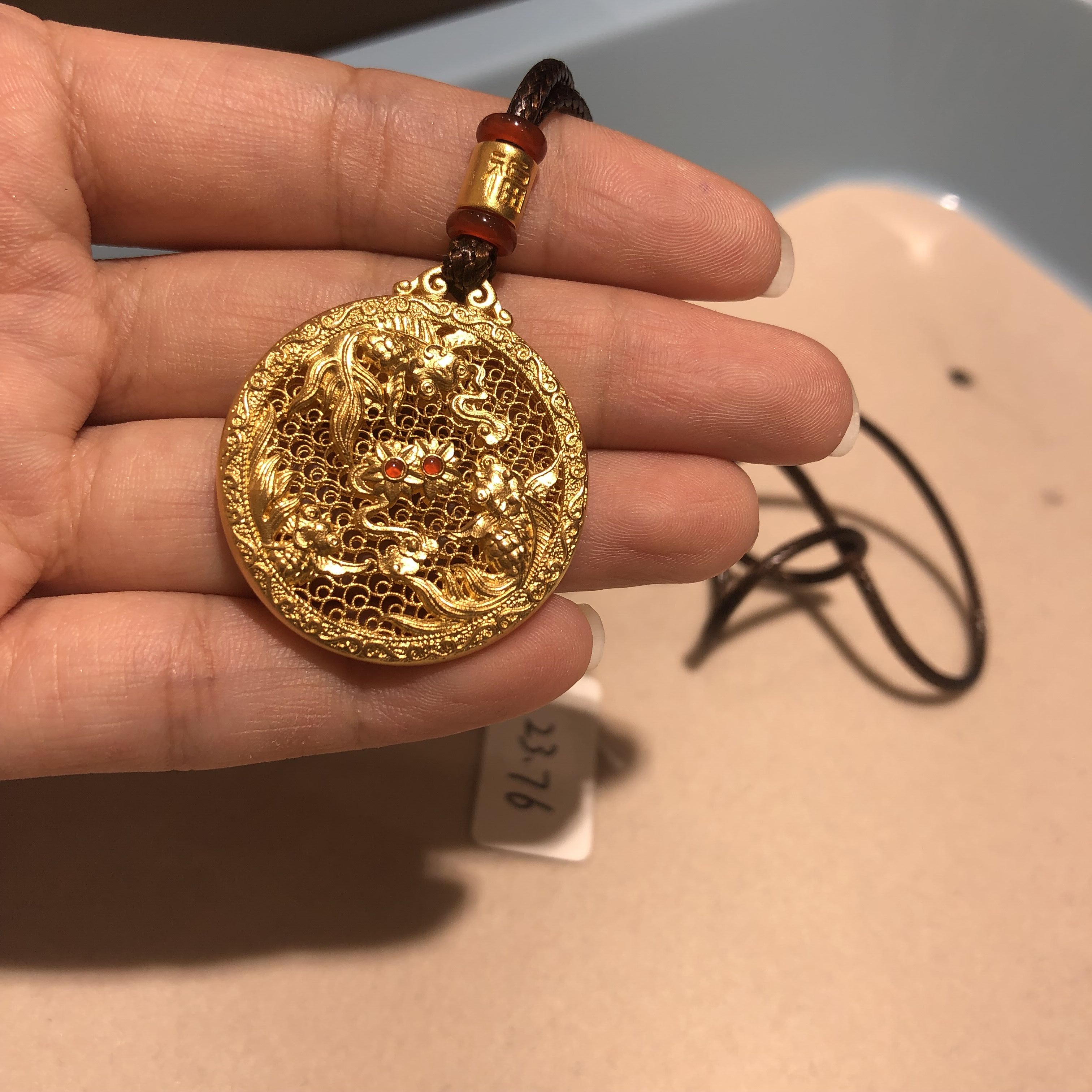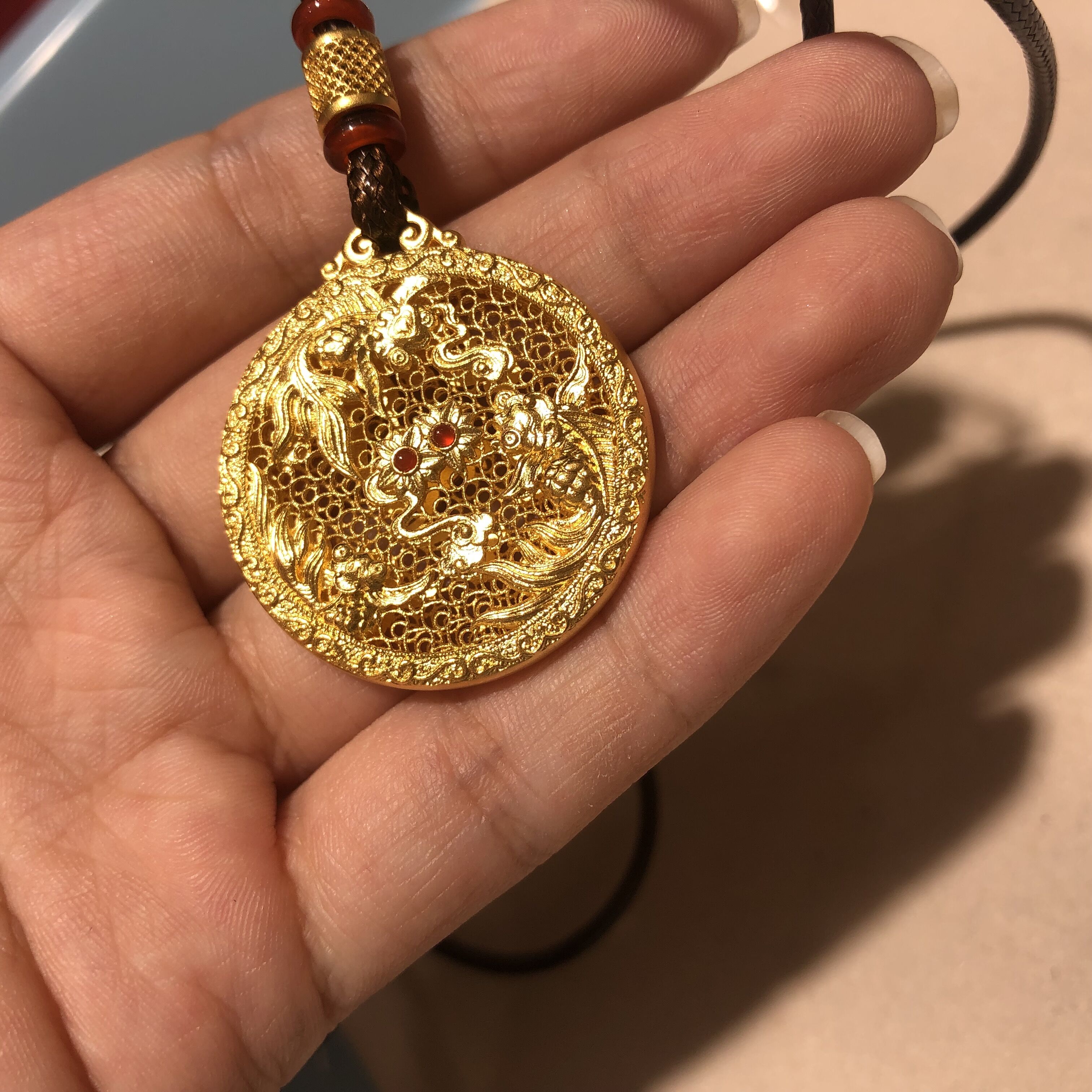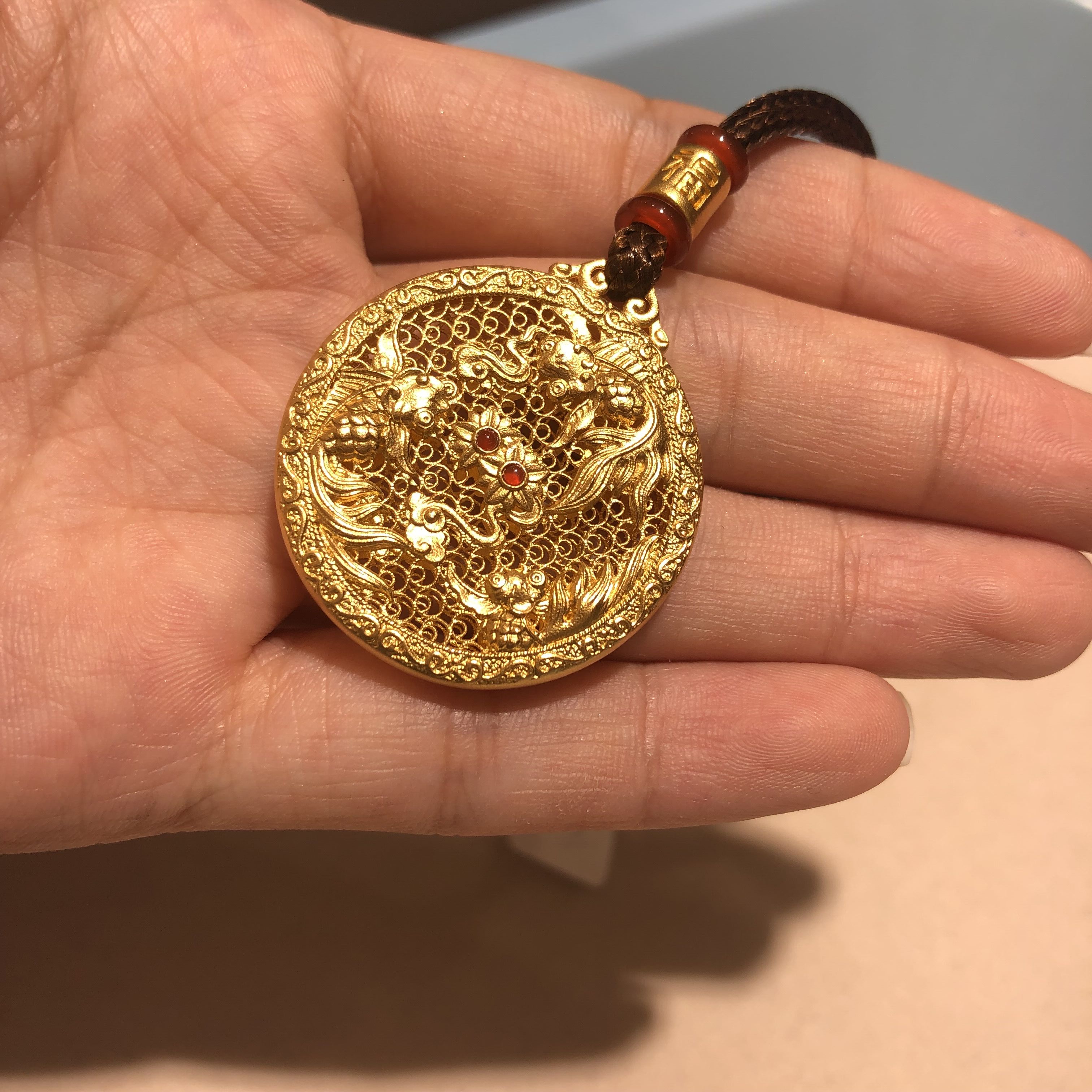 Everyone's altar ancient method gold jade full hall pendant ancient method gold gold pendant ancient method hollow filigree pendant pure gold 999