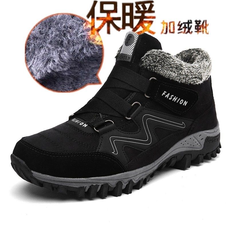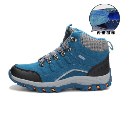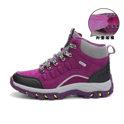 Winter high tube outdoor couple shoes hiking shoes plus velvet warm women's cotton shoes waterproof non-slip hiking shoes large size men's shoes