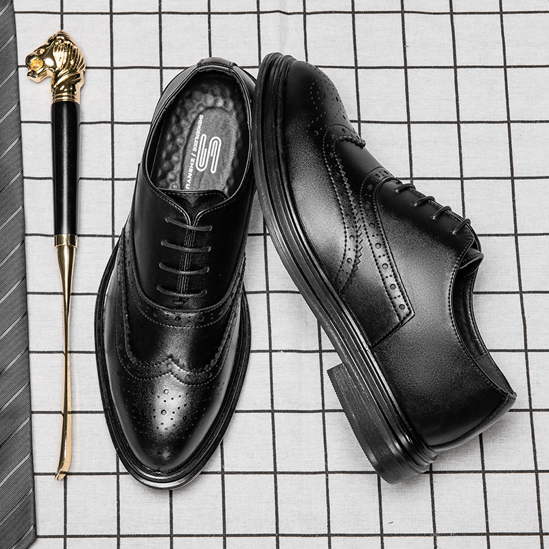 Star same style leather shoes men's new Korean version of business formal wear casual inner heightened Brock carving British style shoes