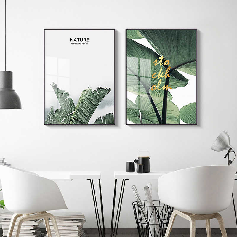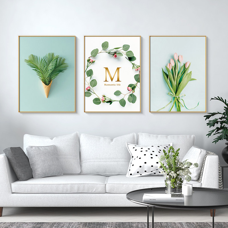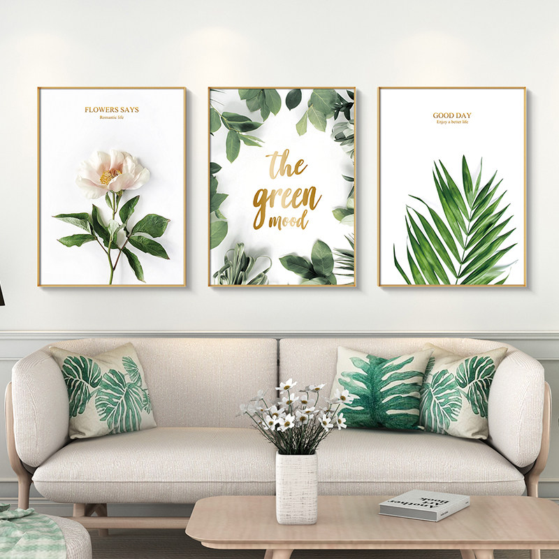 Modern minimalist living room decoration painting free of punch sofa Background wall hanging painting Atmosphere Family frescoes Green plant triptych