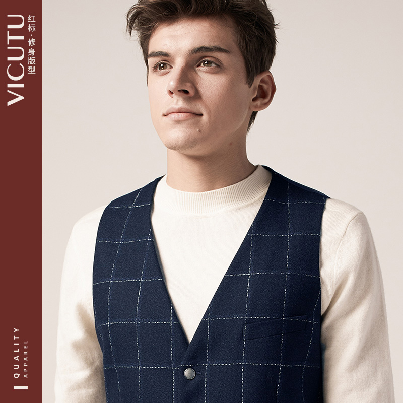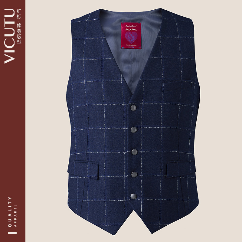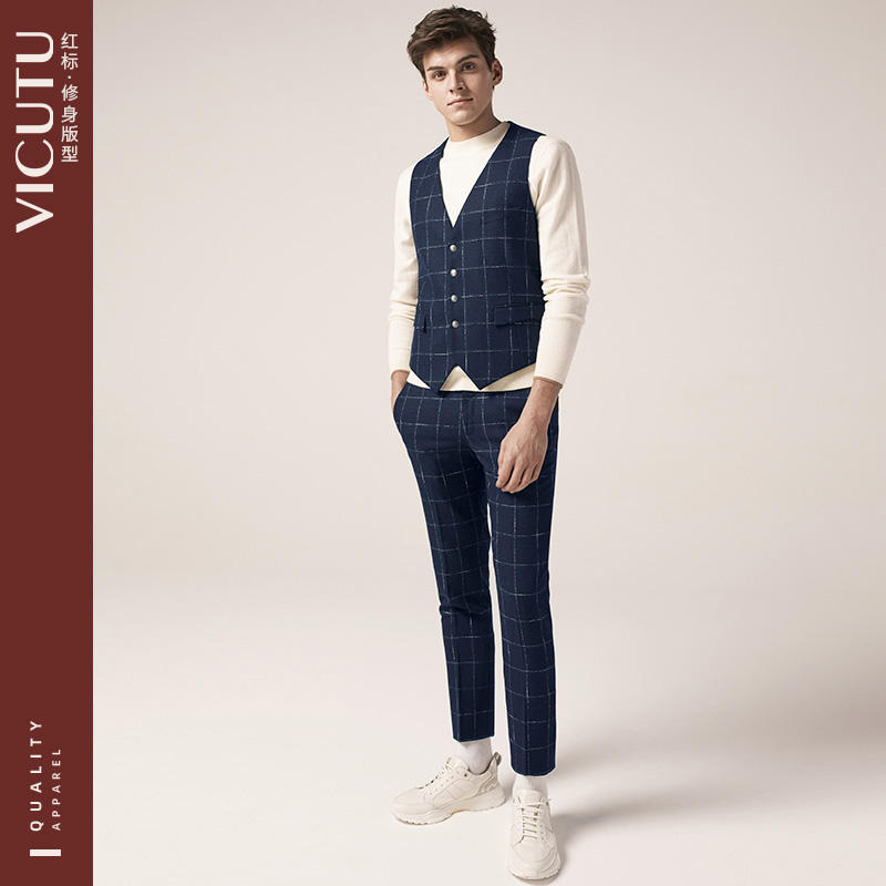 VICUTU Weikedo shopping mall same men's vest fashion plaid wool horse clip slim fit fit male Hui
