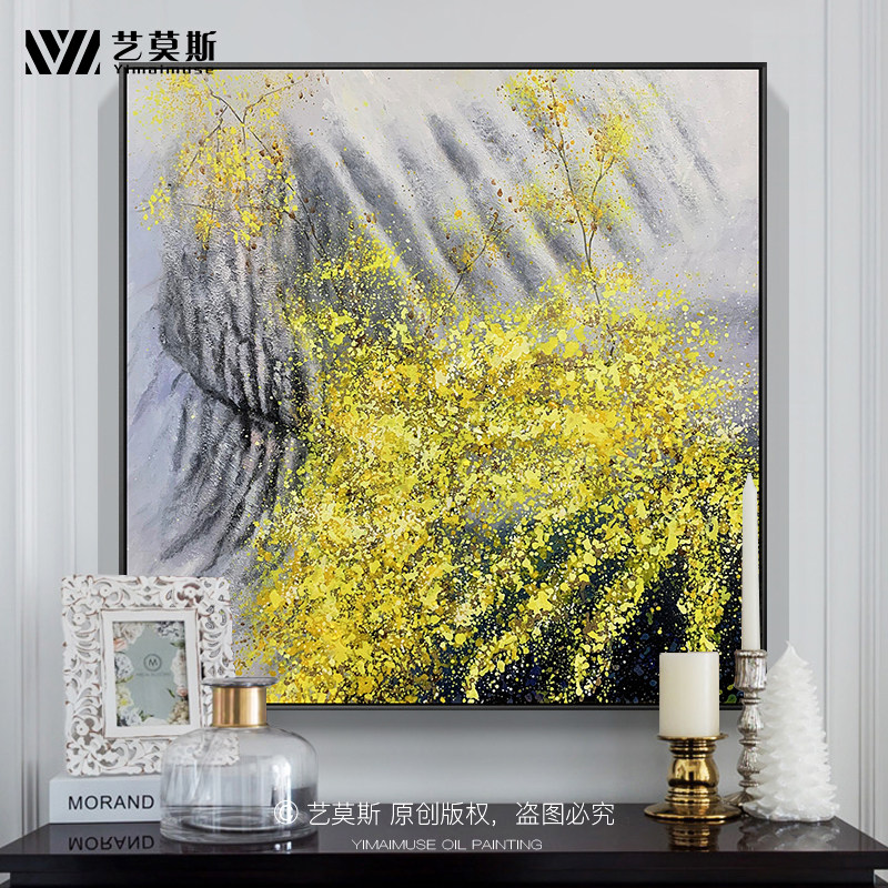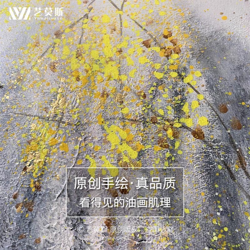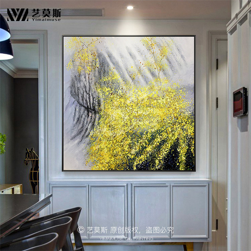 Pure Hand Painted Living Room Decoration Painting Xuanguan Dining Hall Hung Painting Hallway Aisle Wall Mural Painting Golden Landscape Book House Oil Painting Custom