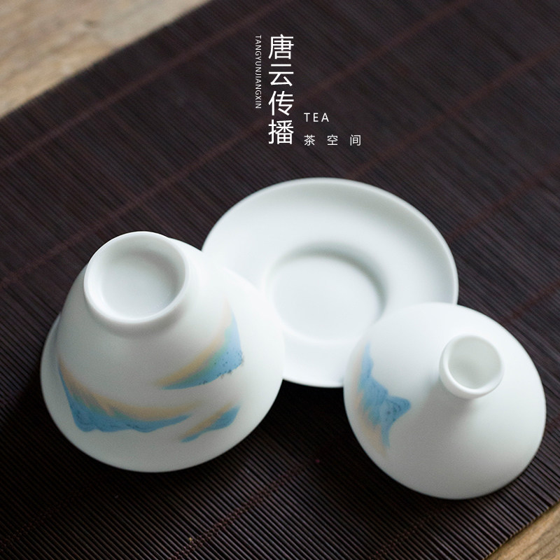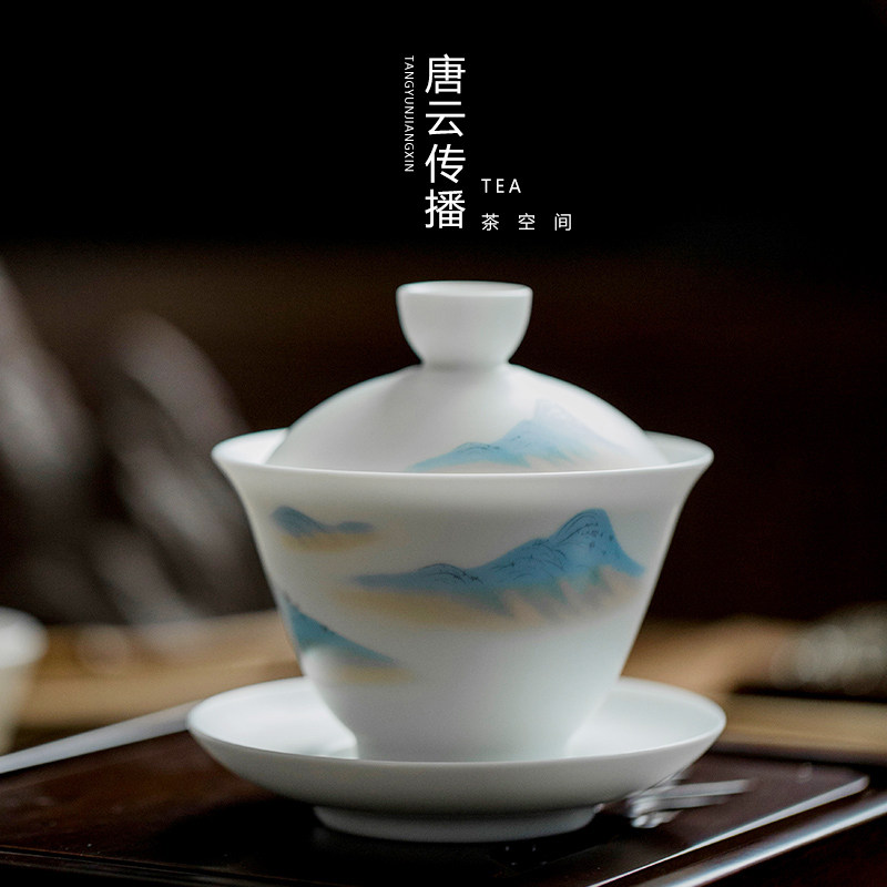 Tang Yun Japanese Kung Fu tea set White Porcelain tea maker Ceramic cover bowl Teacup Hand grab pot Three-year bowl