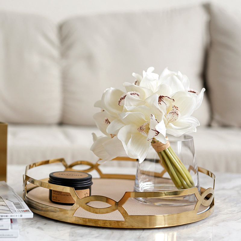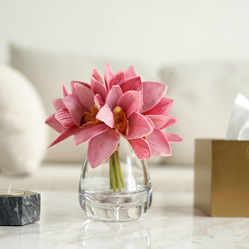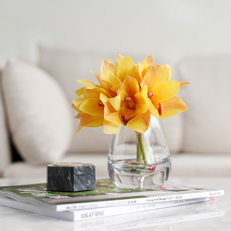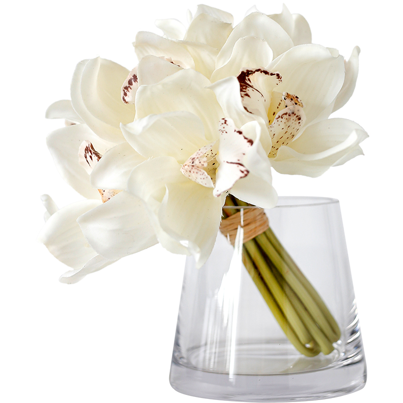 Gardenia home French cymbidium simulation flower ornaments fake flower decorative flowers Glass vase transparent living room flower arrangement