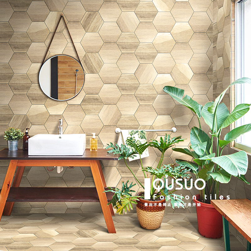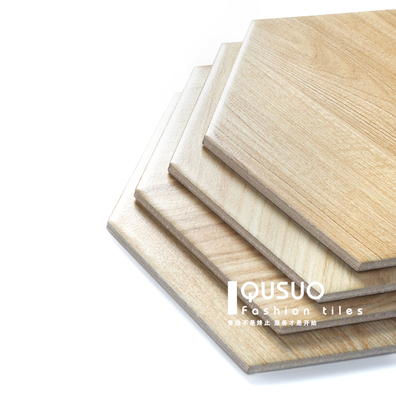 Fun Nordic hexagonal wood grain tiles Powder room tiles Kitchen wall tiles ins net red dining room bathroom floor tiles