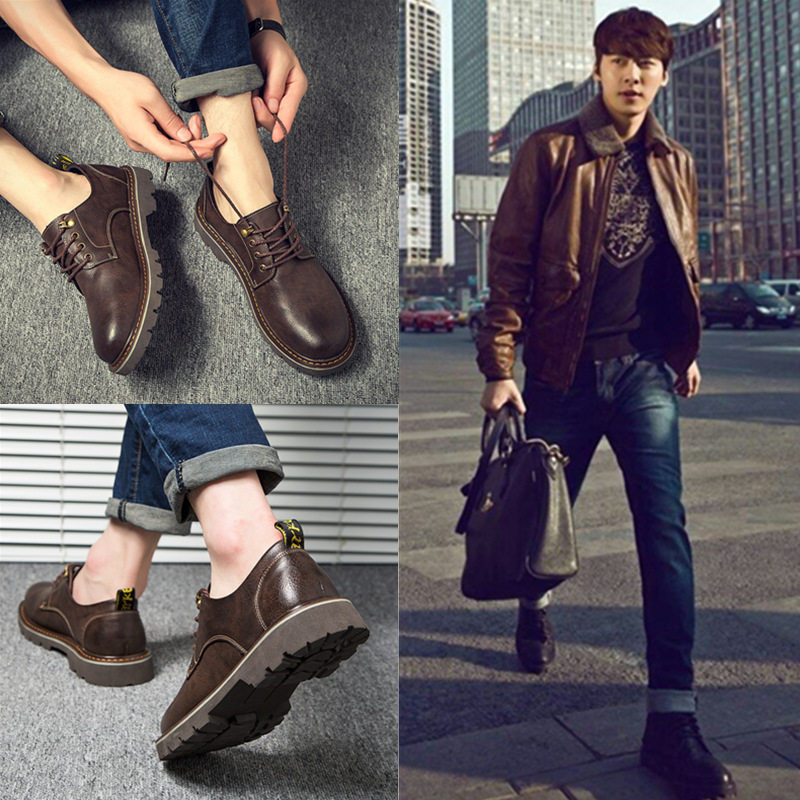 Tide brand big leather shoes 2020 autumn men's shoes leather casual men's Korean version trend Martin boots all-match trendy shoes