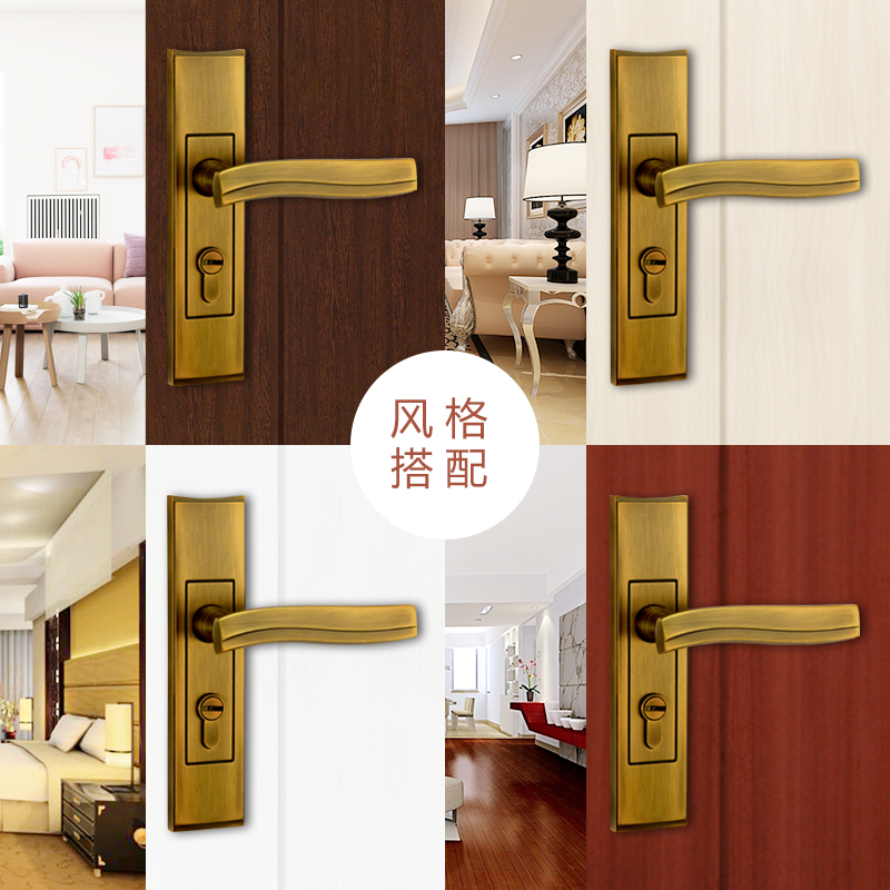 Yellow-ancient bronze-yellow ancient copper-door lock 4-inch hinged door suction yellow ancient copper-door lock 5-inch primary-secondary yellow bronze hinge door suction