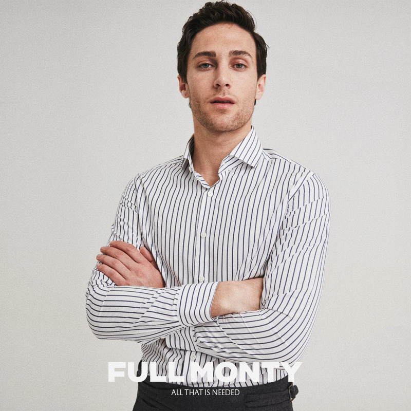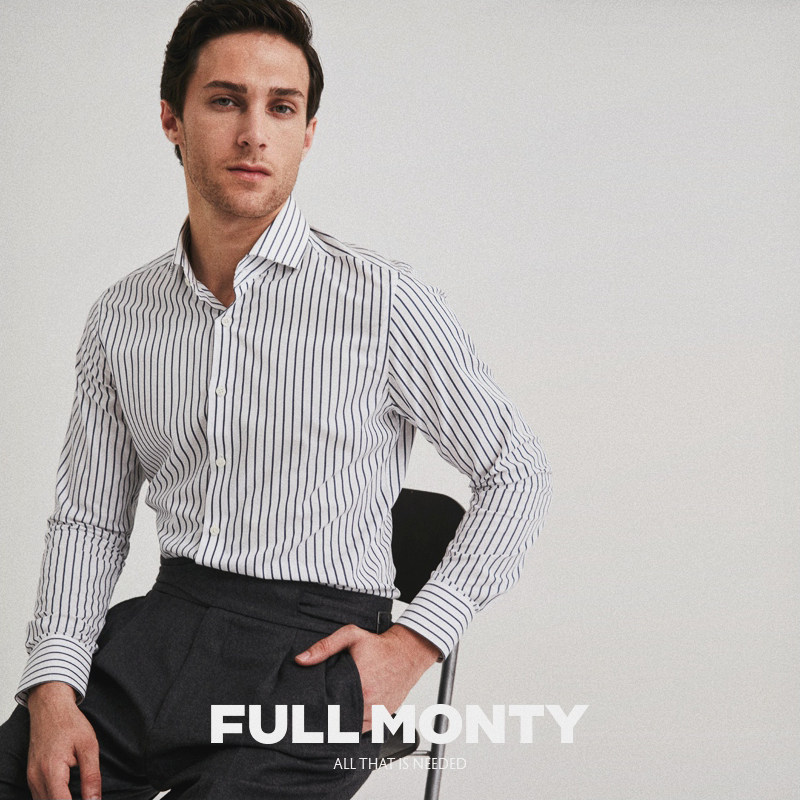 FULL MONTY white striped long sleeve shirt for men business casual shirt to make pure cotton dress spring style