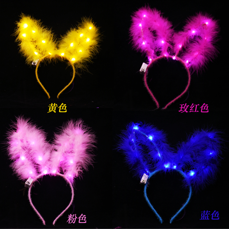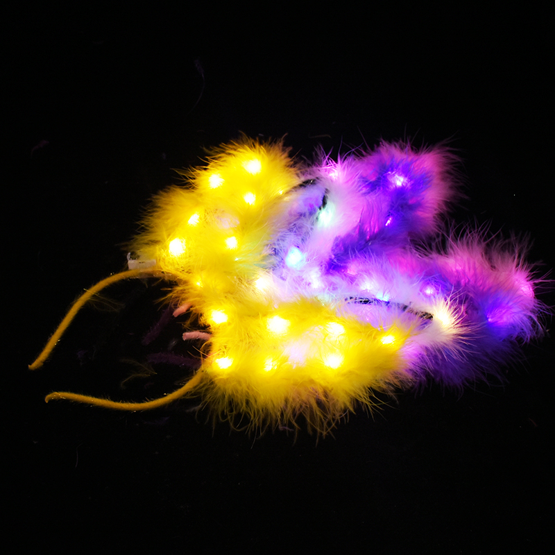 Feather Rabbit Ears Luminous Headband 14 Lights Gold Silk Cat Ears Headband Plush Hair Accessories Street Stall Night Market Children's Toys