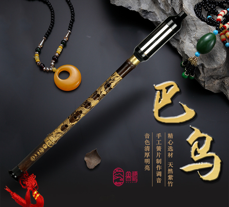 Bau purple bamboo carved dragon vertical blowing bau GFCA lower b key learning type portable portable ancient style disassembleable instrument flute