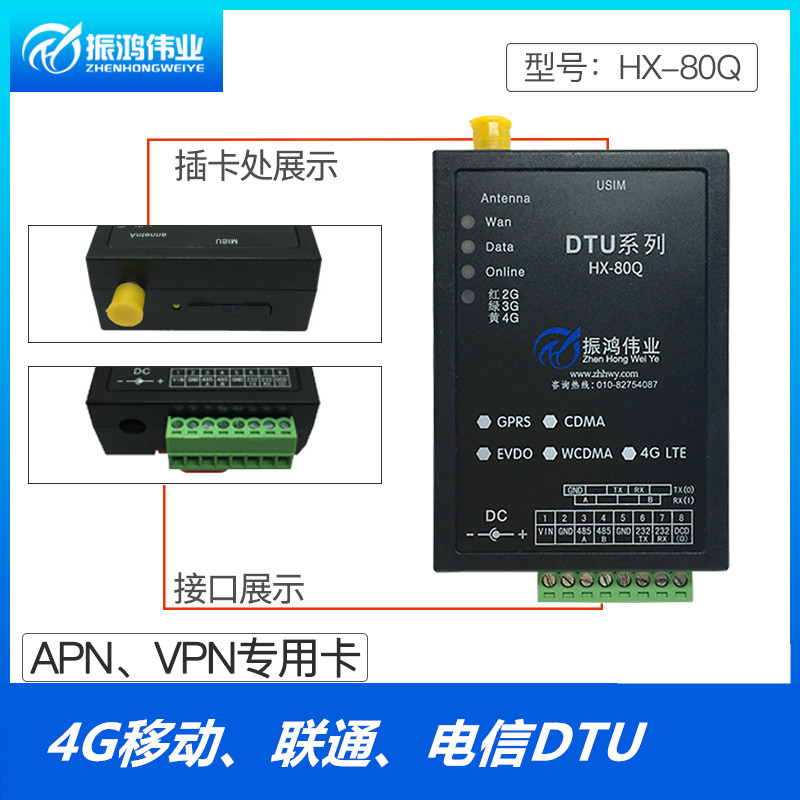4GDTU module transparent transmission 485 232 Compatible gprs dtu wireless transmission device HX-80Q