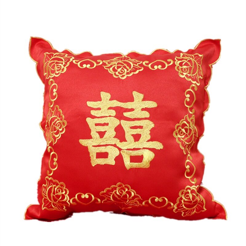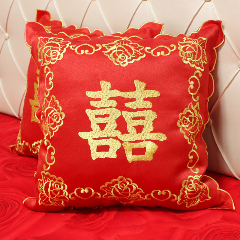 Big Red Festive Wedding Pillowcase Golden Yellow Embroidered Happy Wedding Cushion Cover Chinese-style core-free fabric