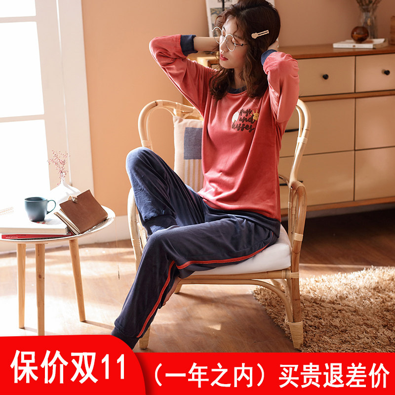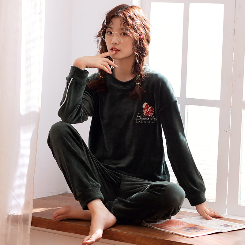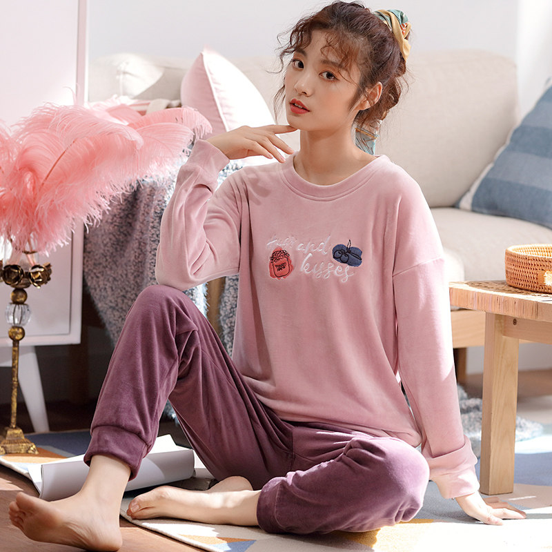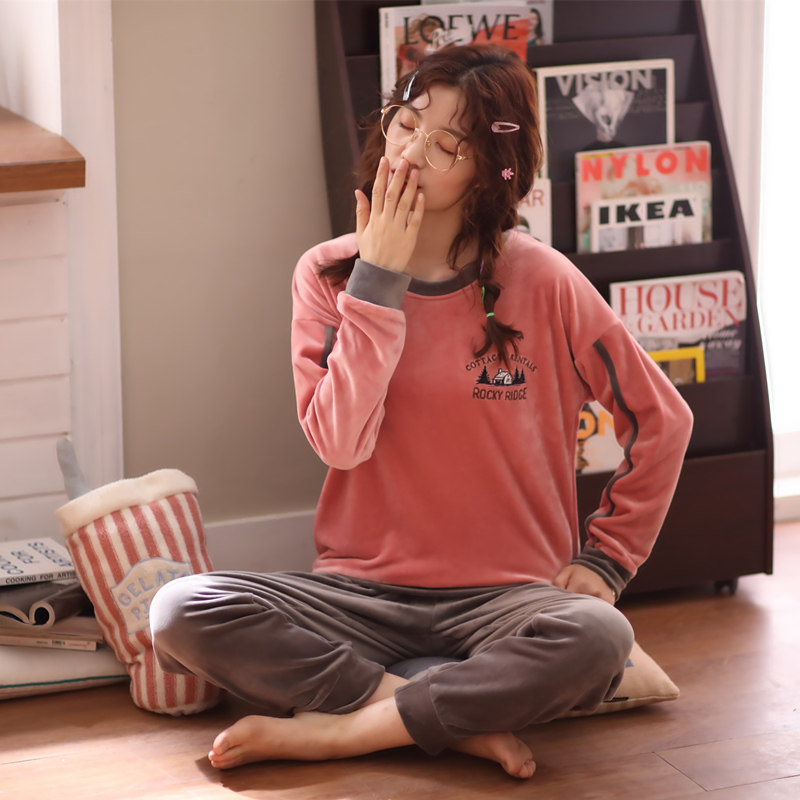 Pajamas woman autumn coral plywood winter flannel sleeve sleeve household clothing sea velvet suit can be worn outside