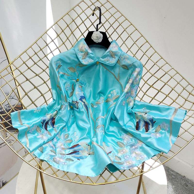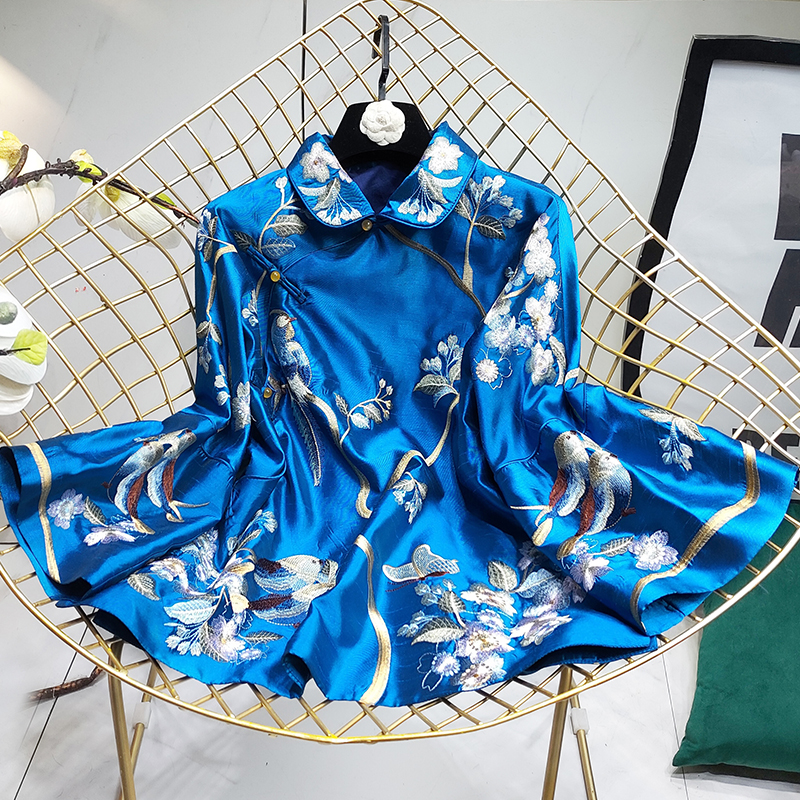 Country of the Republic Wind Han clothes Improved short qipao Tang Dress Large Size size Chinese short Embroidered Blouse Women Loose large size Size Coat Tide