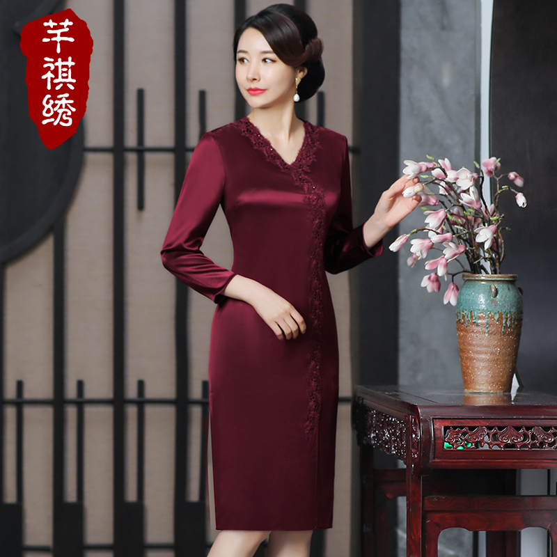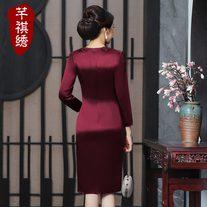 Mother Banquet Dress Qipao Dress 2021 elegant and tall open fork mother-in-law Noble Gown with long version of temperament
