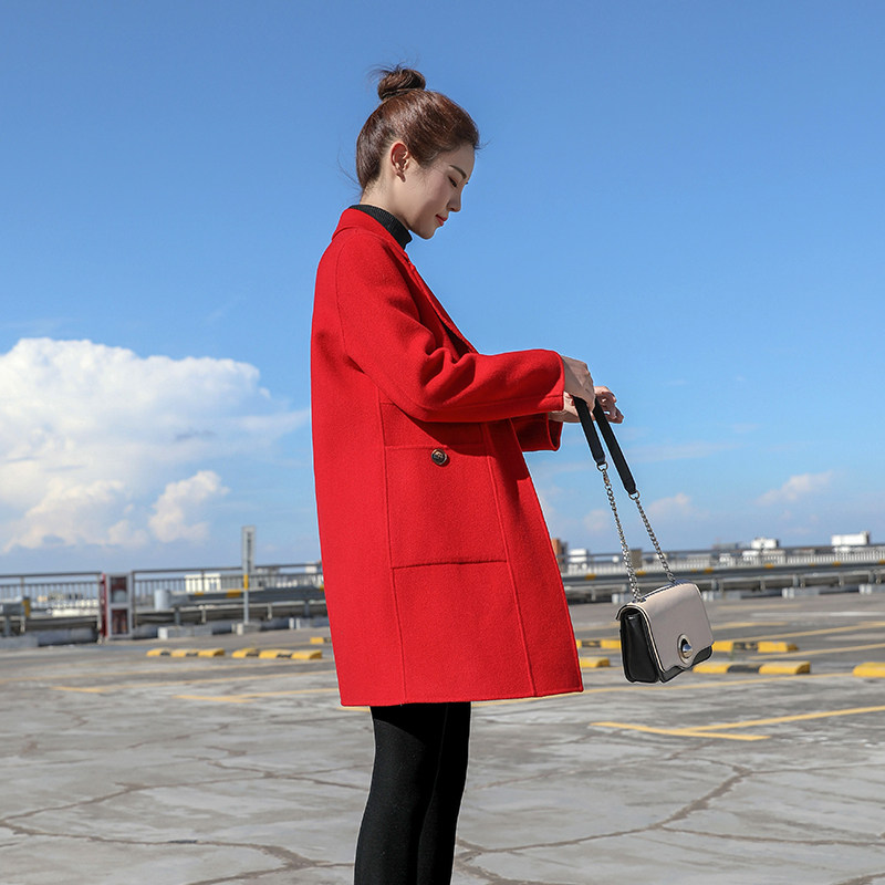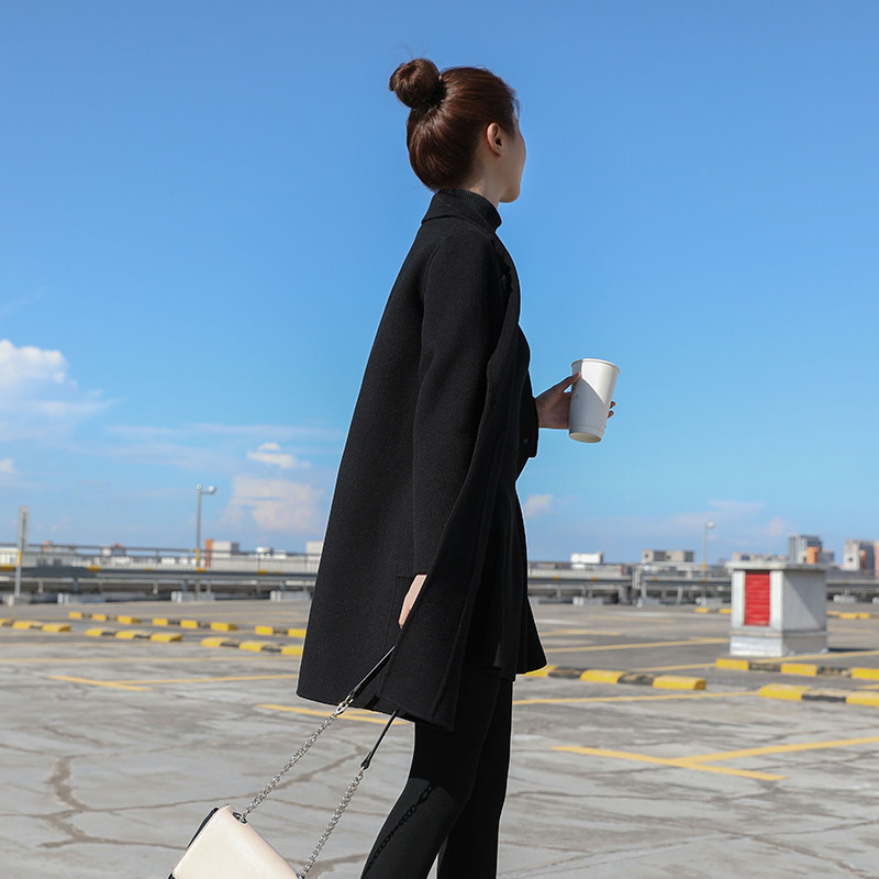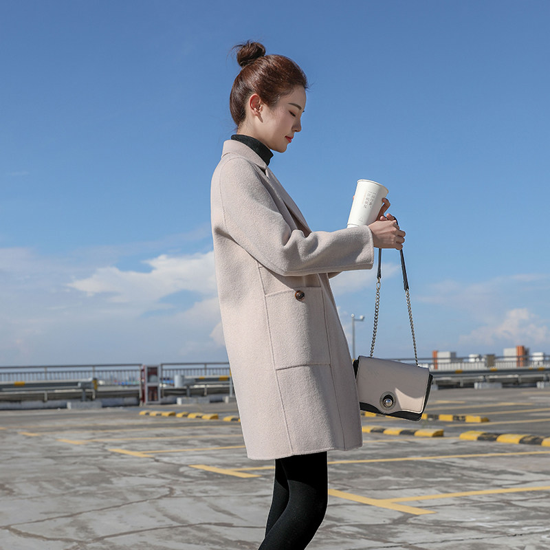 Hepburn style double-sided woolen small coat cashmere coat women's long version of Korean version 2021 autumn and winter new popular