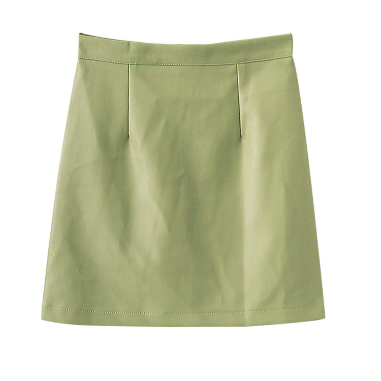 Bull Oil Fruit Green Small Leather Dress Woman 2021 New High Waist Large Size Size Fat Mmare Character Half Body Dress Fashion Temperament Slim Fit