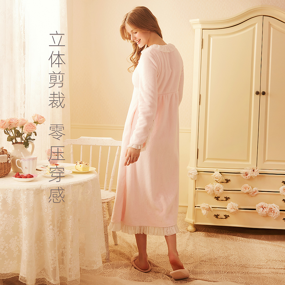 RoseTree palace style coral fleece nightgown ladies autumn and winter thickened warm flannel pajamas long version bathrobe