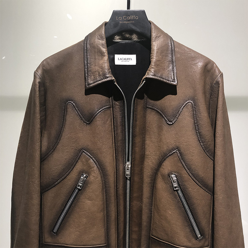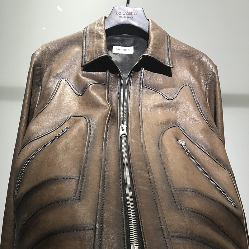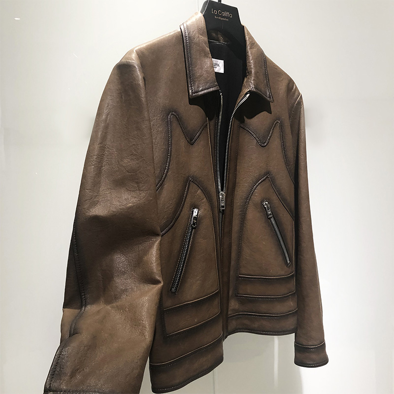 LA CALIFFA Italian style hand-blended process Imported sheepskin slim leather jacket leather jacket