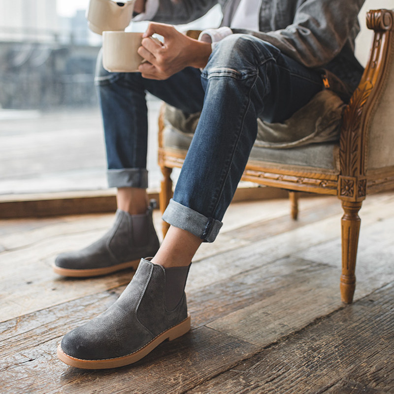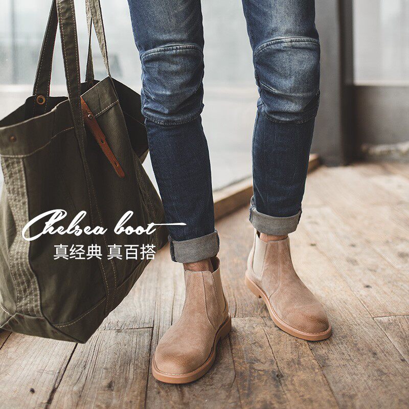 Boots male fur plus Martin boots Chelsea boots pilot autumn and winter English wind black helping solid