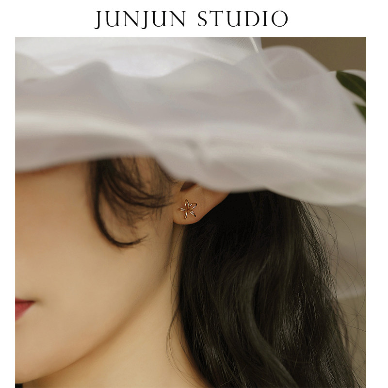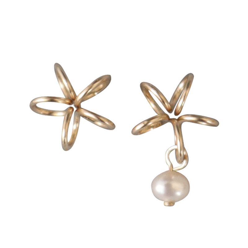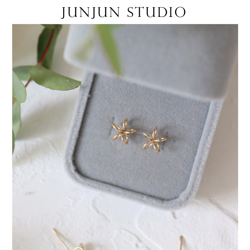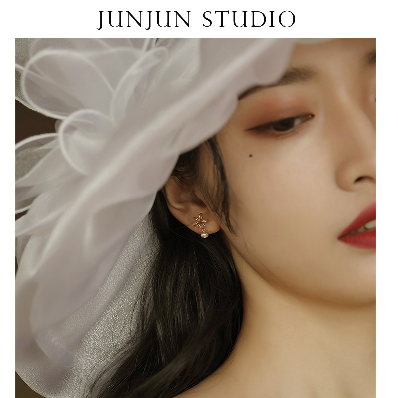 JUNJUN original design stereo asymmetric AB model with simple pearl ear nails in the United States 14k injection earrings