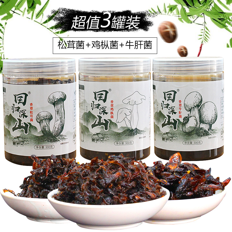 Oil chicken fir Yunnan specialty matsutake wild spicy instant fried fresh mushrooms Porcini mushroom chicken mushroom oil 500g*3 bottles