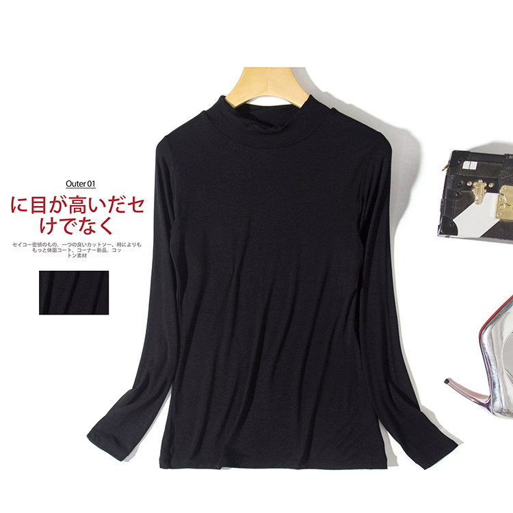 2019 new spring and autumn semi-high collar bottoming shirt women's thin modal slim top small high collar with long-sleeved T-shirt