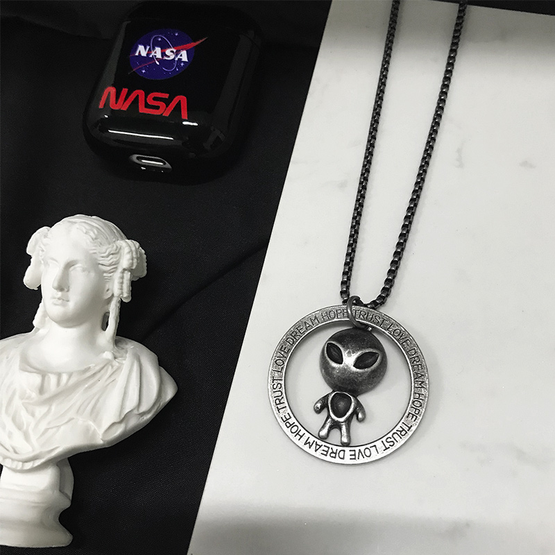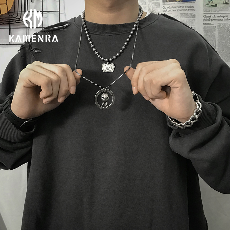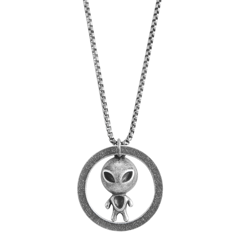 Carmen Retro Tide Card Necklace Man Personality Hip Hop Hiphop Alien Pendant Female Titanium Steel Couple Hanging Accessories