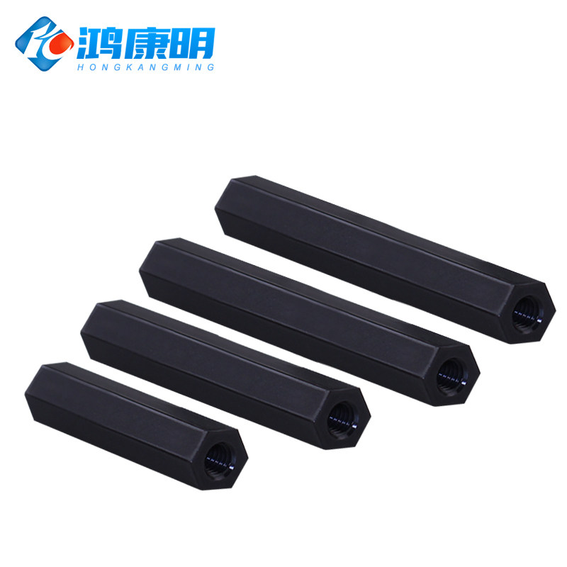PA66 native material black Outer hexagonal nylon column M4 flat head double-pass single head isolation column plastic corrosion resistant insulation