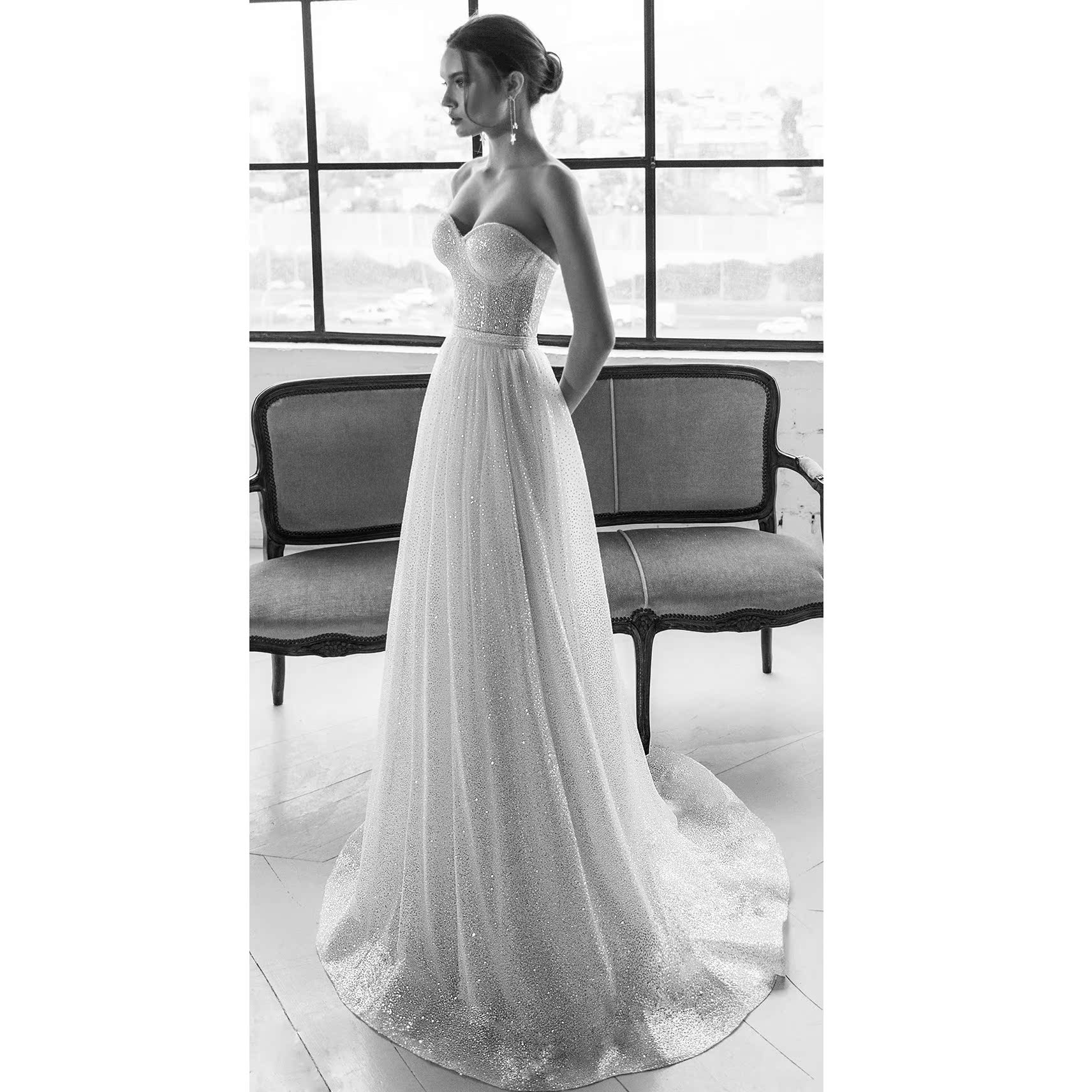 Modern minimalist light wedding dress 2021 new princess dream extravaganza Sexy Smear with a small swing brigade shooting brief