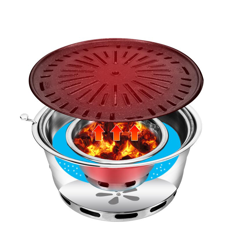 Barbecue grill Korean-style commercial charcoal barbecue grill Smoke-free large smoke exhaust multi-function barbecue boiler for dining room