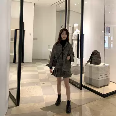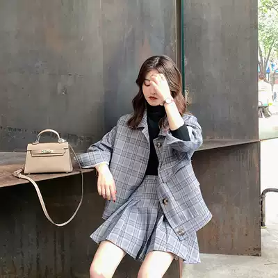 One or three best products small autumn clothes with high plaid jacket high waist pleated skirt suit jacket two-piece women