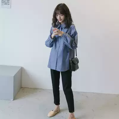 Pregnant women denim shirt Spring and Autumn long sleeve top short little pregnant women doll shirt loose pregnant women shirt Spring