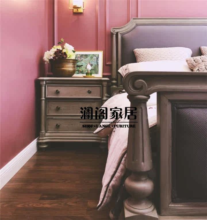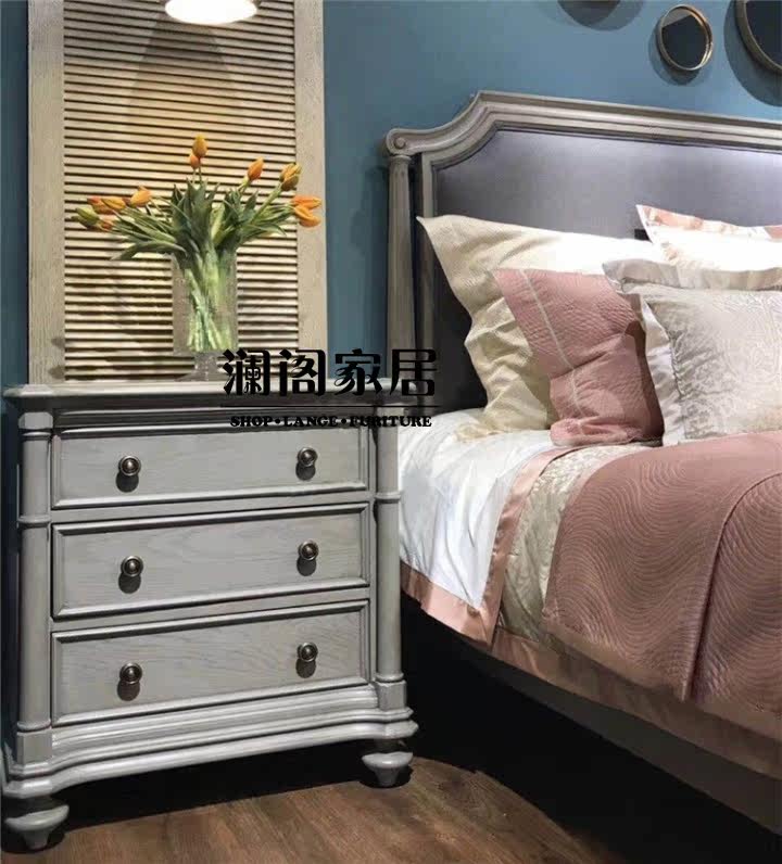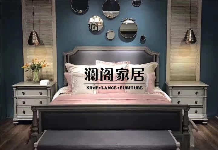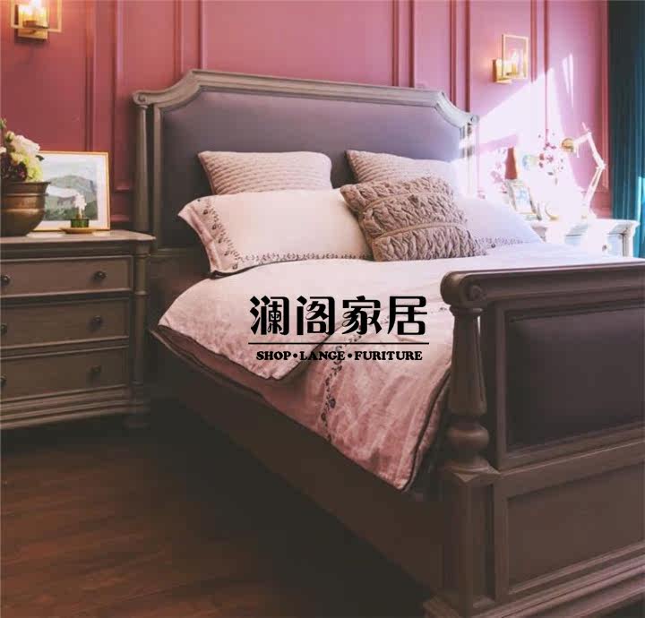 American solid wood bed 1 5 meters 1 8 light luxury bed Nordic double bed French Retro superior Gray master bedroom soft package wedding bed