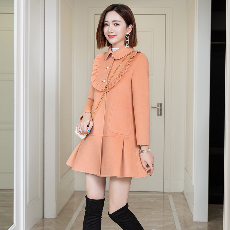 Double-sided cashmere coat women's long version of the 2021 new spring slim small orange fur coat