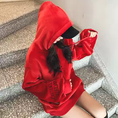Autumn and winter red golden velvet women 2021 New plus velvet padded lamb velvet profile coat Christmas single product