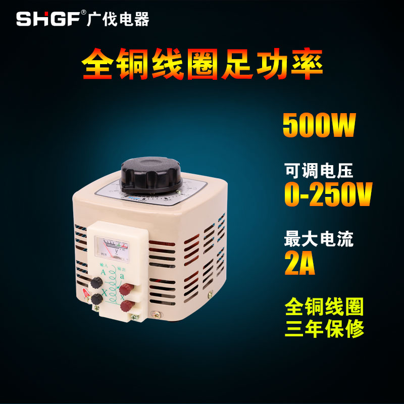 Guangfa single-phase voltage regulator 220v AC regulation contact type 0-250v adjustable power supply voltage regulator transformer 500W
