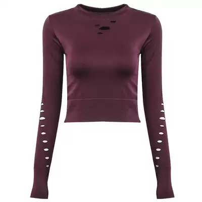 Fitness tops women's sports tight T-shirts hollow sexy umbilical running net red yoga clothes quick-drying long-sleeved autumn and winter