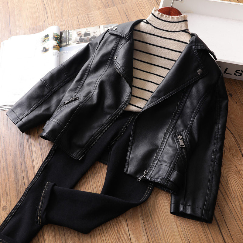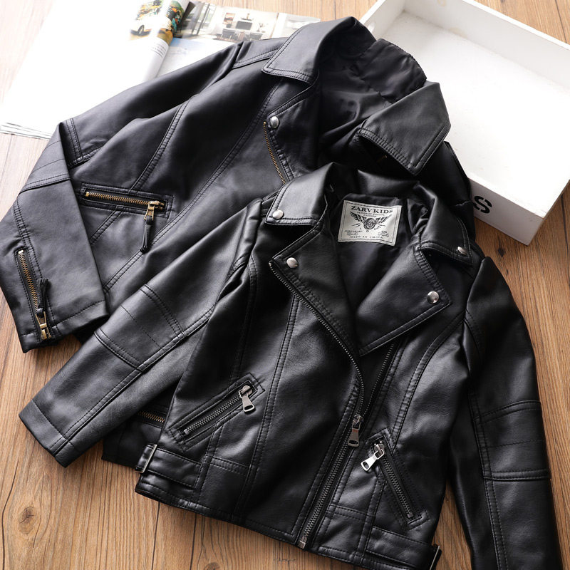 Girls ' Foreign style leather clothing Autumn and Winter European and American children's baby parent-child coat Large children's motorcycle leather jacket loose tide