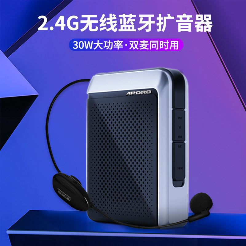 2 4G wireless Bluetooth megaphone small bee teacher special 30W High power use double ear mai class Bao extra-long standby talk class big volume outdoor portable player propaganda loudspeaker