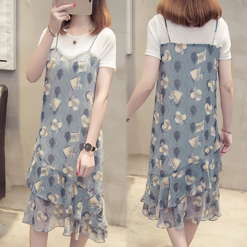 2022 New women's clothing Fat mm Snow spun Flowers Foreign Dress Children Summer Conspiculess Two Style Suits of Aging Foreign Pie