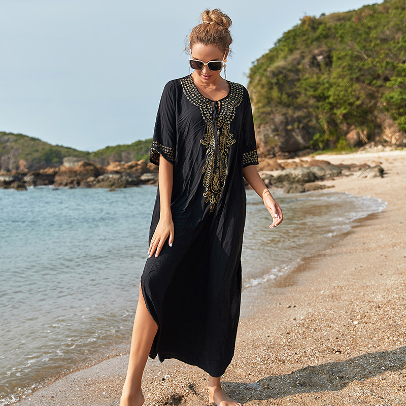 2020 new-payer cotton embroidered big code easy holiday beach with dress long skirt woman bikini anti-seater outskirt