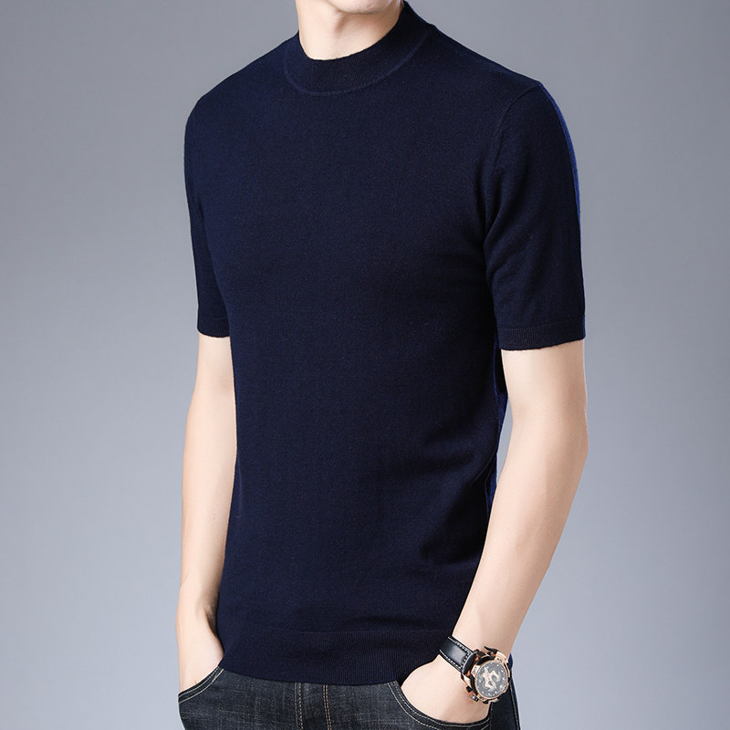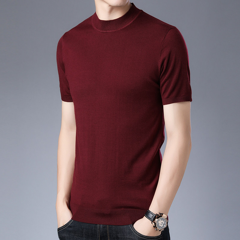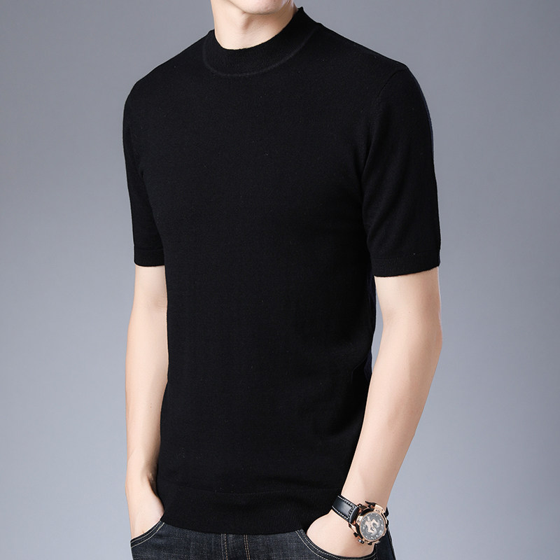 Half-height collar short sleeve lamb sweatshirt male spring autumn season youth pure color trendy sweater half-sleeve T-shirt Jersey Jersey Undershirt