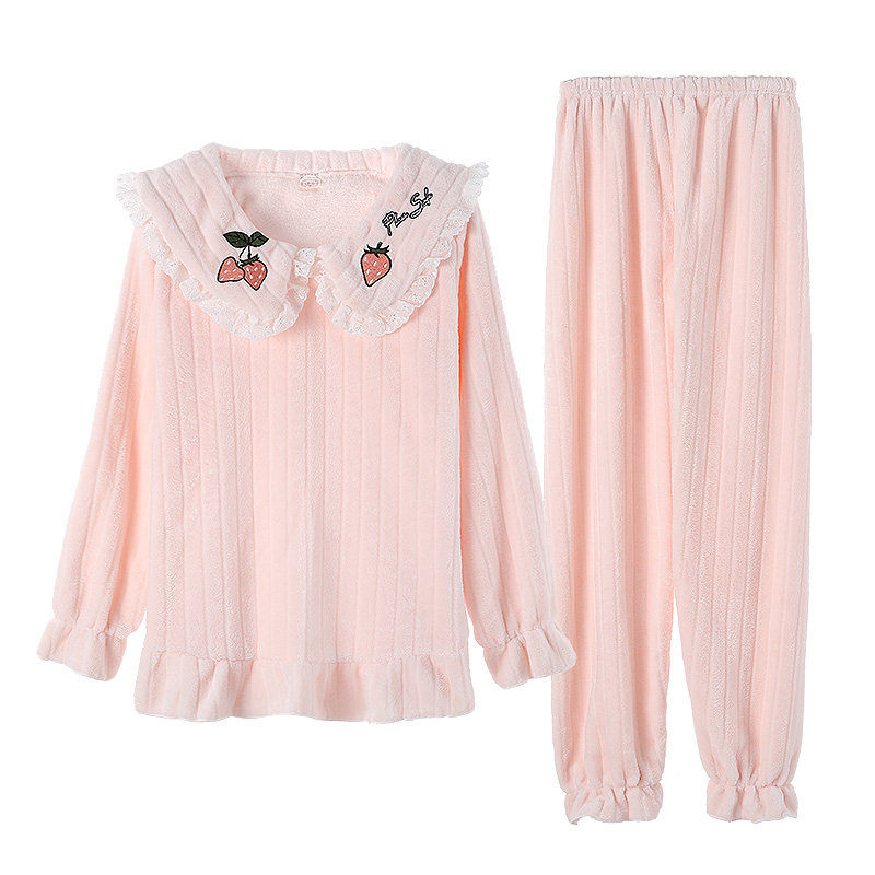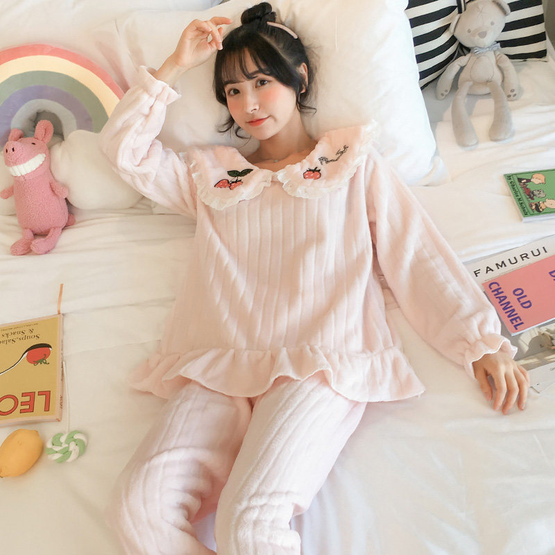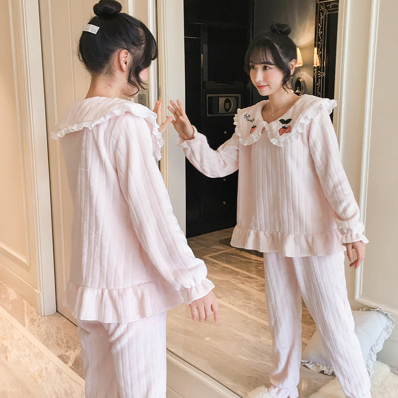 Pajamas women's autumn and winter thickened coral velvet Korean version of fresh students princess style home clothes flannel fever clothing pants