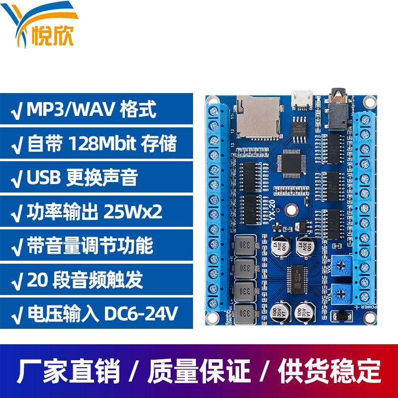 Voice power amplifier board 20-Channel two-channel 25W audio module Yuexin YX-20 switch control voice module