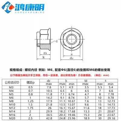 Nylon lock nut galvanized black metal hexagonal flange face lock nut anti-slip anti-loose M3M4